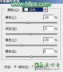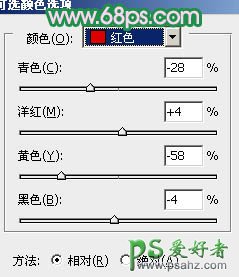 8、创建可选颜色调整图层,对红,白进行调整,参数设置如图19,20,确定后按Ctrl + J 把当前可选颜色调整图层复制一层,不透明度改为:20%,效果如图21。