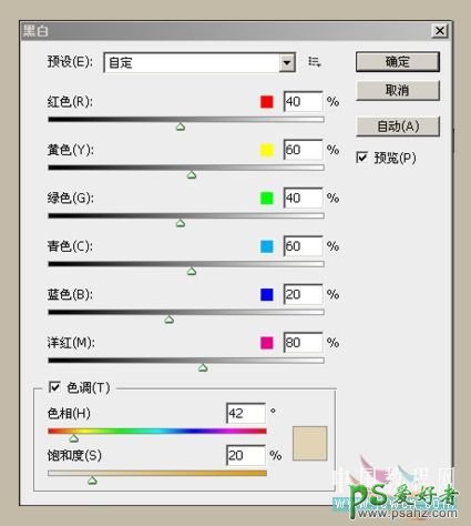 1、打开原图素材,创建黑白调整图层,设置如图。