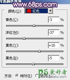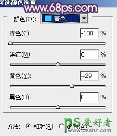 12、调出人物选区,创建可选颜色调整图层,对红,青进行调整,参数设置如图24,25,效果如图26。