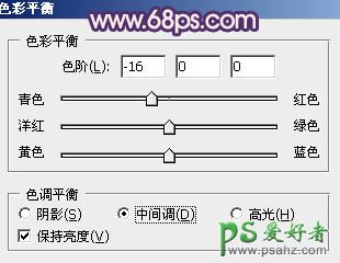 3、创建色彩平衡调整图层,对中间调及高光进行调整,参数设置如图4,5,效果如图6。