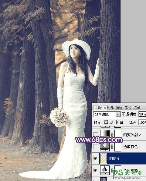 4、按Ctrl + Alt + ~ 调出高光选区,新建一个图层填充颜色:#F7DE97,图层混合模式改为“颜色减淡”,不透明度改为:30%,效果如下图。