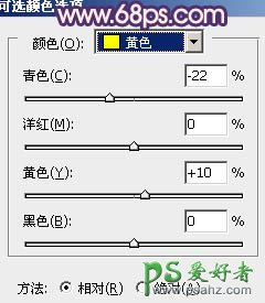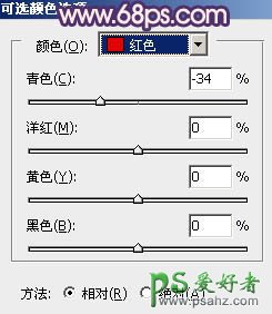 5、创建可选颜色调整图层,对红,黄进行调整,参数设置如图8,9,效果如图10。