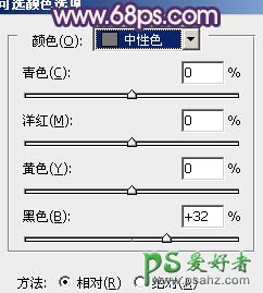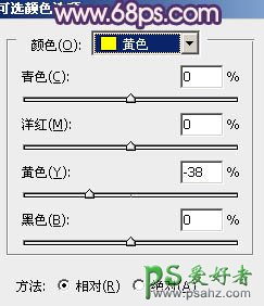 7、创建可选颜色调整图层,对黄,中性色进行调整,参数设置如图13,14,效果如图15。