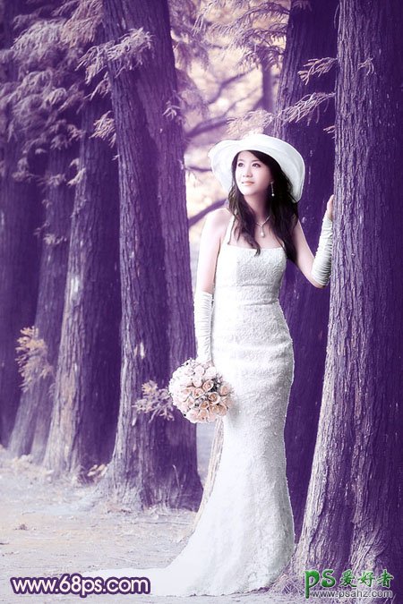 PS美女照片后期调色教程,photoshop调出经典蓝调树林少女写真图片,少女艺术照调色教程,蓝色婚片调色不太好把握,调成纯蓝色画面会很单调,需要在蓝色中加入一些补色,这样画面才会耐看。调色的时候可以先把图片处理成单色图片,然后慢慢加入其它颜色。