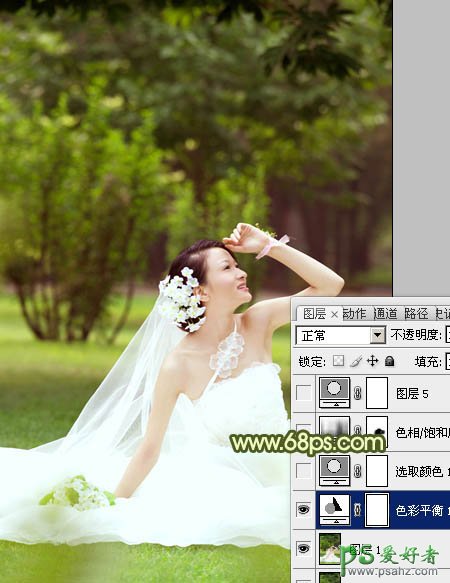 PS照片后期调色教程,photoshop调出甜美阳光色外景美女婚纱写真照,原图素材以绿色为主,调色的时候只需要把绿色稍微左一些调整,适当加亮背景。然后再把人物肤色调红润一点,整体看上去柔和,甜美即可。 最终效果 原图 1、打开原图素材,对