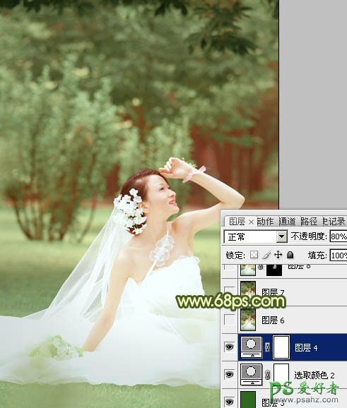 9、按Ctrl + J 把当前可选颜色调整图层复制一层,图层不透明度改为:80%,效果如下图。