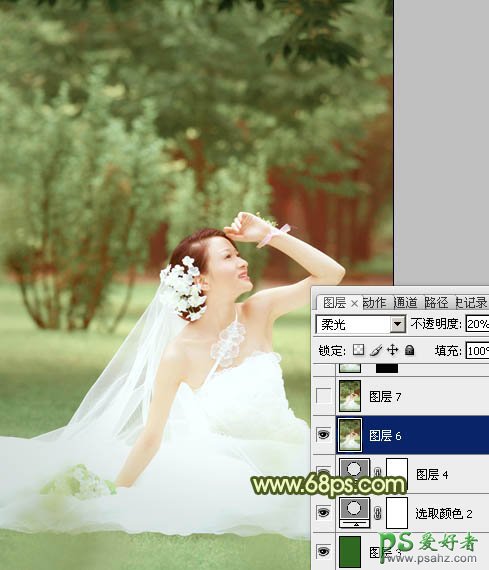 10、新建一个图层,按Ctrl + Alt + Shift + E 盖印图层。执行:滤镜 > 模糊 > 高斯模糊,数值为5,确定后把图层混合模式改为“柔光”,不透明度改为:20%,效果如下图。