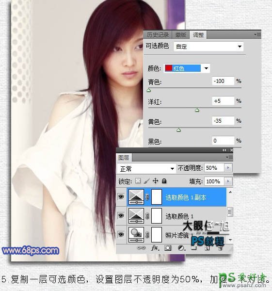 5、把可选颜色调整图层复制一层,图层混合模式改为“正常”,不透明度改为:50%,加强一下对比,效果如下图。