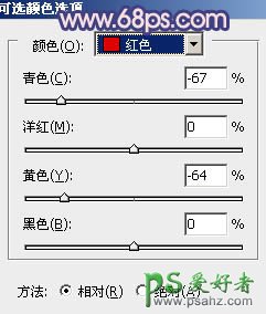 12、创建可选颜色调整图层,对红色进行调整,参数设置如图22,确定后把蒙版填充黑色,用白色画笔把人物脸部擦出来,效果如图23。