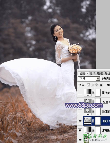 PS调色教程:给外景MM图片调出梦幻婚纱艺术效果