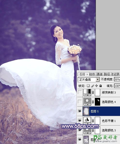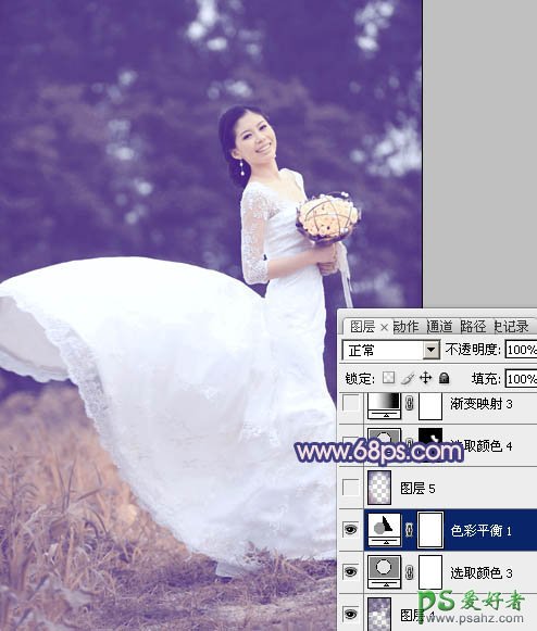 PS调色教程:给外景MM图片调出梦幻婚纱艺术效果