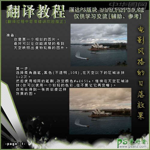 1、打开原图素材,选择柔角画笔,黑色,不透明度为:10%,在天空以下的区域涂抹1,2次。然后使用相同的笔刷,改变颜色:#ad651a,继续在天空区域涂抹,大致效果如下。