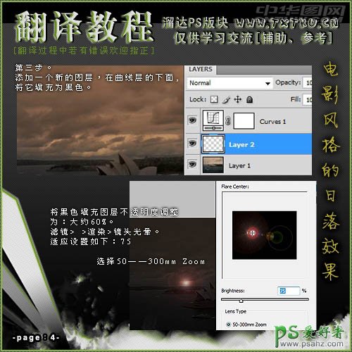 3、添加一个新的图层,在曲线图层的下面,填充为黑色,将黑色填充图层不透明度调整为:60%,执行: