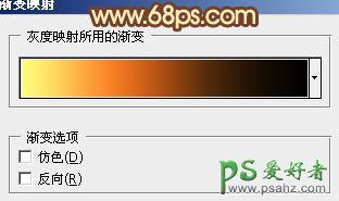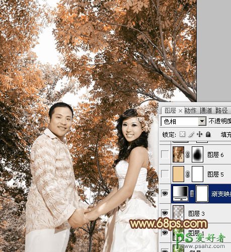 2、创建渐变映射调整图层,颜色设置如图2,3,确定后把图层混合模式改为“色相”,效果如图4。