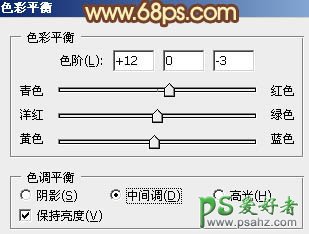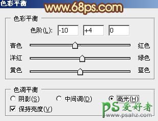 7、创建色彩平衡调整图层,对中间调及高光进行调整,参数设置如图12,13,确定后把图层不透明度改为:70%,效果如图14。