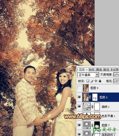 9、新建一个图层,盖印图层。图层混合模式改为“正片叠底”,不透明度改为:20%,加上图层蒙版,用黑色画笔把人物脸部擦出来,效果如下图。