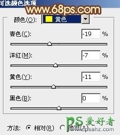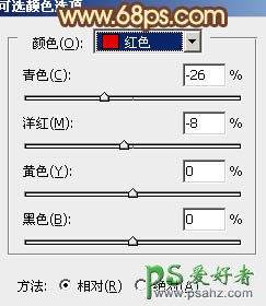 11、创建可选颜色调整图层,对红,黄进行调整,参数设置如图21,22,效果如图23。