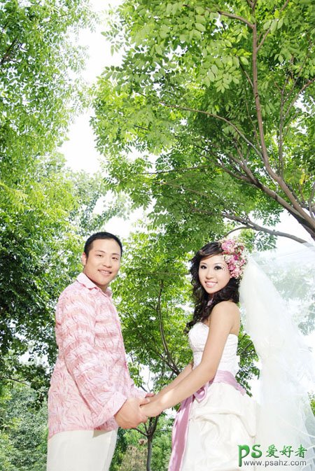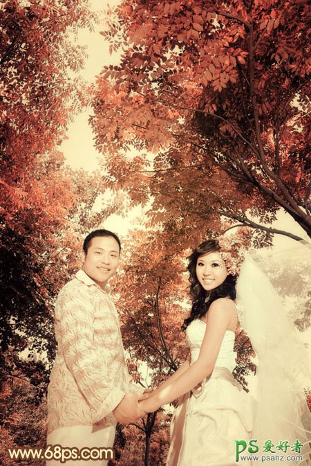今天我们来学习一篇PS婚片后期调色教程,PS调色教程:给树林里的情侣婚纱照调出古典的色调,本教程介绍黄褐色图片的调色方法。调色过程也比较简单,直接用渐变映射等快速调出主色,然后再对图片柔化及细节处理即可。