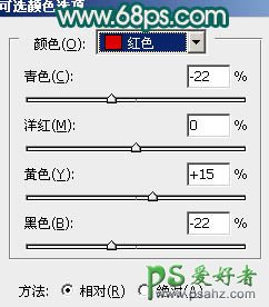 2、创建可选颜色调整图层,对红色进行调整,参数设置如图3,简单把人物肤色调红一点,效果如图4。
