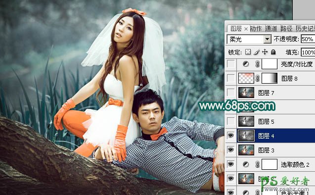 6、新建一个图层,按Ctrl + Alt + Shift + E 盖印图层。按Ctrl + Shift + U 去色,图层混合模式改为“柔光”,不透明度改为:50%,效果如下图。