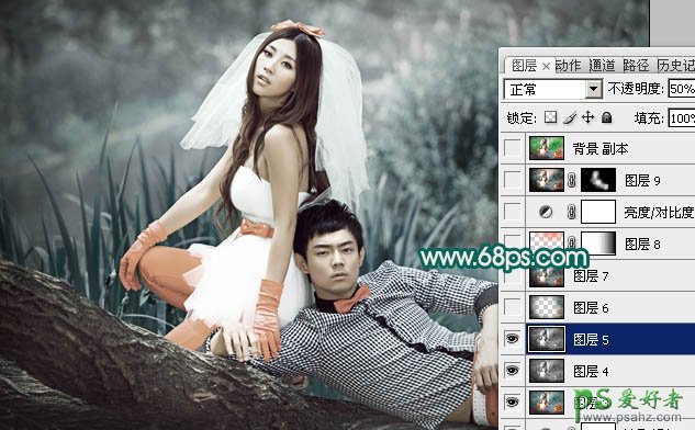 7、新建一个图层,盖印图层。按Ctrl + Shift + U 去色,不透明度改为:50%,效果如下图。