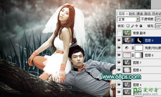 PS调色教程:给个性的情侣外景照调出暗青色效果