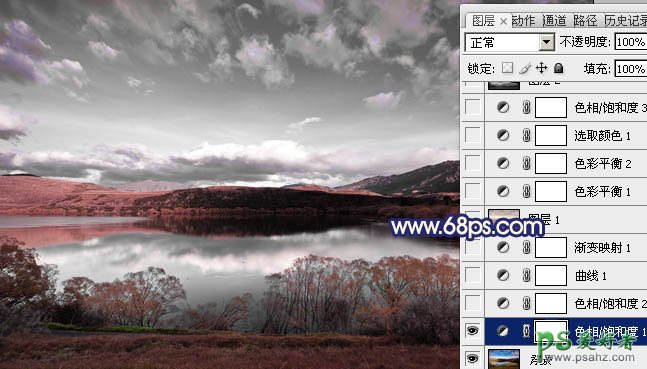 photoshop调出暗调蓝红色梦幻风景图片