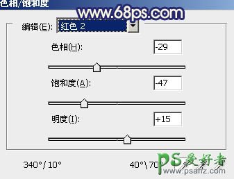1、打开原图素材,创建色相/饱和度调整图层,选择红色,用吸管吸取山脉的颜色调整,参数设置如图1,选择青色用吸管吸取天空颜色再调整,参数设置如图2,效果如图3。