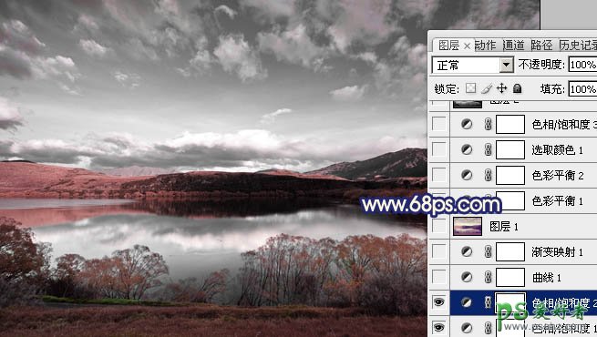 PS照片后期调色教程,photoshop调出暗调蓝红色梦幻风景图片,本教程介绍暗蓝色风景图片调色方法。主要是用色相/饱和度来调色,调出主色后需要加强层次和明暗,云彩部分可以根据自己的喜好装饰一些光束。 最终效果 原图 1、打开原图素材,创