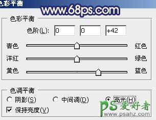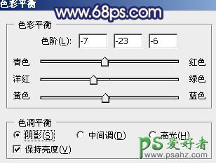 7、创建色彩平衡调整图层,对阴影调整,参数设置如图15,效果如图16。