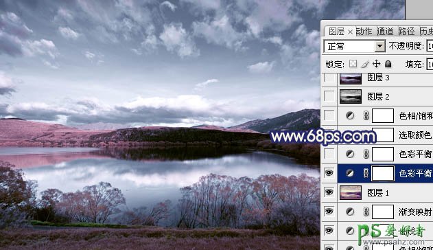 photoshop调出暗调蓝红色梦幻风景图片