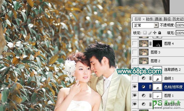 PS调色教程:给外景漂亮男女婚片调出淡淡的蓝紫色