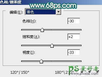 3、创建色相/饱和度调整图层,选择青色,用吸管吸取叶子的青色再调整,参数设置如图6,效果如图7。