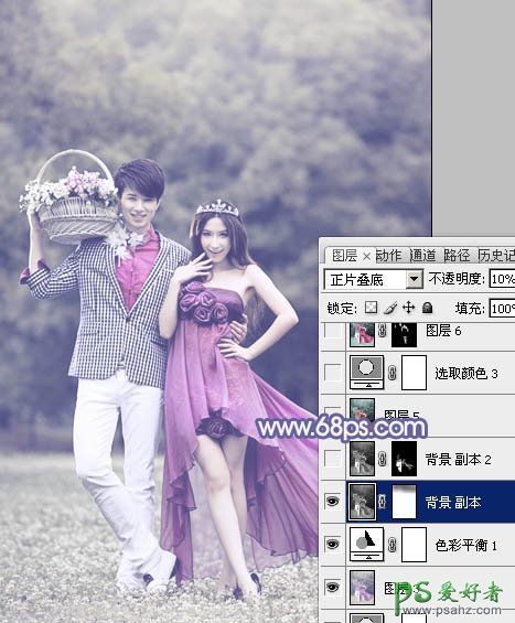 9、新建一个图层,盖印图层。按Ctrl + Shift + U 去色,图层混合模式改为“正片叠底”,不透明度改为:10%,效果如下图。