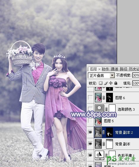 10、把当前图层复制一层,图层不透明度改为:30%,混合模式为“正片叠底”不变。按住Alt 键添加图层蒙版,用白色画笔把人物衣服部分擦出来,效果如下图。