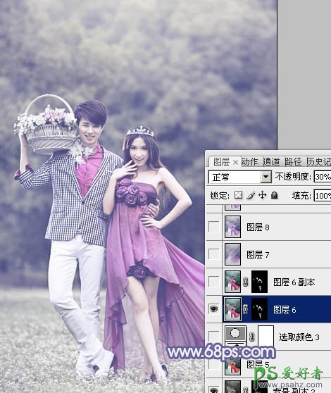 12、按住Alt 键添加图层蒙版,用白色画笔把人物肤色部分擦出来,不透明度改为:30%,效果如下图。