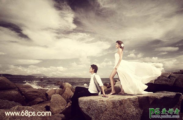 今天我们来学习一篇PS婚片后期调色教程,photoshop调出古典风格美腿玉足情侣婚片,本教程介绍黄褐色图片的调色方法。大致过程:处理之前需要把原图的饱和度降低,把画面做成类似中性色图片。然后用设置好的渐变映射等快速加上主色。后期加强一下层