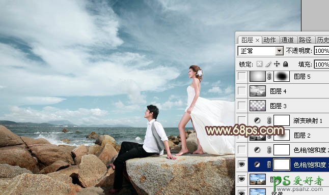 PS调色教程:给外景漂亮男女婚片调出淡淡的蓝紫色