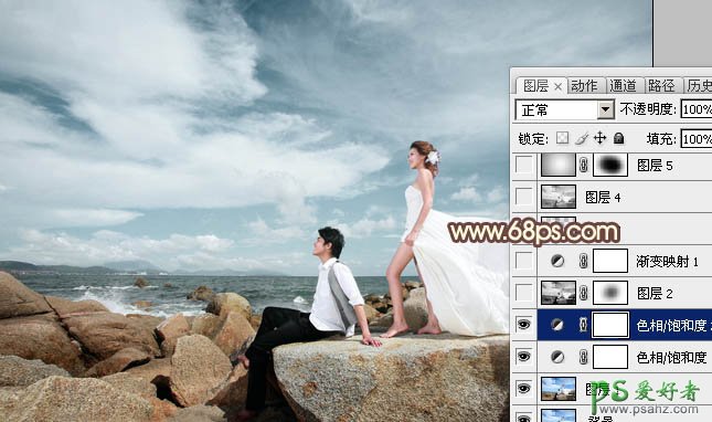PS调色教程:给外景漂亮男女婚片调出淡淡的蓝紫色