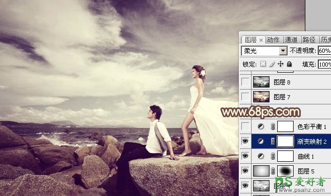 9、创建渐变映射调整图层,颜色设置如图13,确定后把图层混合模式改为“柔光”,不透明度改为:60%,效果如图14。