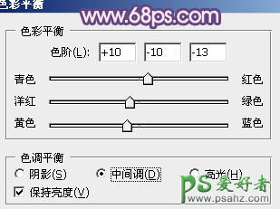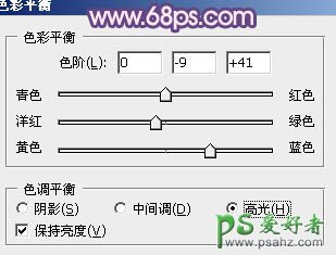 14、创建色彩平衡调整图层,对中间调,高光进行调整,参数设置如图24,25,效果如图26。