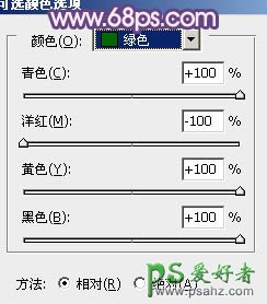 4、创建可选颜色调整图层,对红,绿进行调整,参数设置如图8,9,效果如图10。