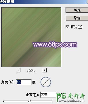 6、新建一个图层,按Ctrl + Alt + Shift + E 盖印图层。执行:滤镜 > 模糊 > 动感模糊,参数设置如图12,确定后把图层混合模式改为“柔光”,效果如图13。