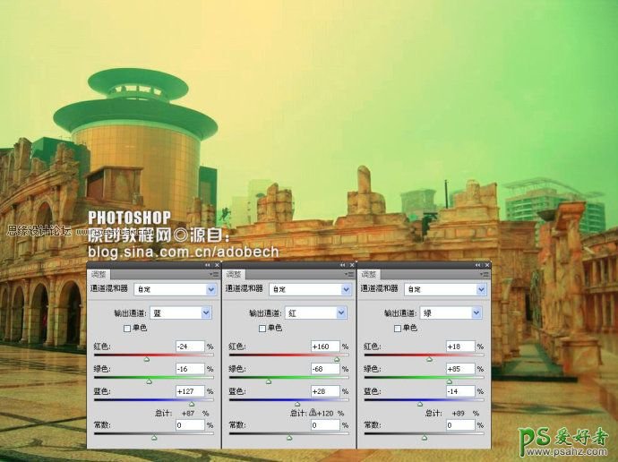 今天我们来学习一篇PS照片后期调色教程实例,photoshop调出古典怀旧色彩建筑风景图片,本教程的调色过程有点独特,作者先用调色工具把图片调成个性的偏色图片,然后再用通道叠加等消除杂色,做成较为中性的古典效果。 最终效果 原图 1、调节