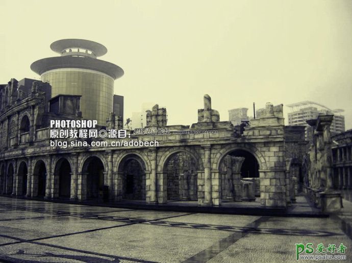 今天我们来学习一篇PS照片后期调色教程实例,photoshop调出古典怀旧色彩建筑风景图片,本教程的调色过程有点独特,作者先用调色工具把图片调成个性的偏色图片,然后再用通道叠加等消除杂色,做成较为中性的古典效果。