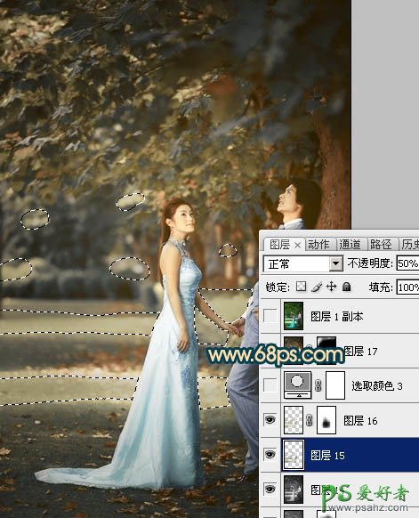 14、新建一个图层,把前景颜色设置为:#8B896B,用画笔把下图过亮的部分涂暗,再适当降低图层不透明度,效果如下图。