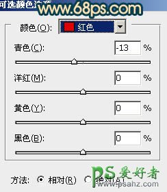 2、创建可选颜色调整图层,对红、黄、绿进行调整,参数设置如图2 - 4,效果如图5。