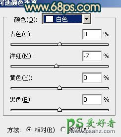 10、创建可选颜色调整图层,对黄、绿、白进行调整,参数设置如图15 - 17,确定后按Ctrl + J 把当前可选颜色调整图层再复制一层,不透明度改为:20%,效果如图18。