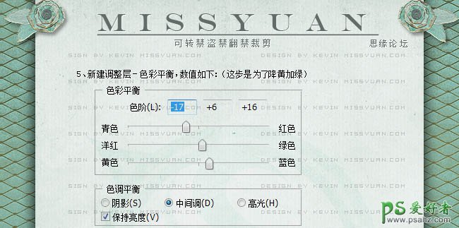 5、创建色彩平衡调整图层,对中间调进行调整,参数设置如下图。 6、创建色相/饱和度调整图层,适当减低全图饱和度,饱和度设置为:-41。 7、新建一个图层,按Ctrl + Alt + Shift + E 盖印图层。执行:滤镜 > 模糊 > 方框模糊,绑架为10,确定后把图层混合模式改为“柔光”,不透明度改为:30%,添加图层蒙版,用黑色画笔把人物部分擦出来。这一步操作时为了让背景增加亮度和对比度,所以人物部分需要擦掉。