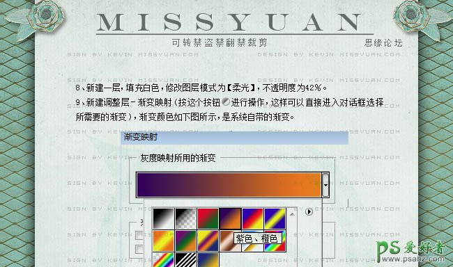 8、新建一个图层填充白色,图层混合模式改为“柔光”,不透明度改为:42%。 9、新建渐变映射调整图层,颜色设置如下图中,确定后把图层混合模式改为“滤色”,不透明度改为:21%。 10、新建图层盖印图层,适当把图层锐化一下。